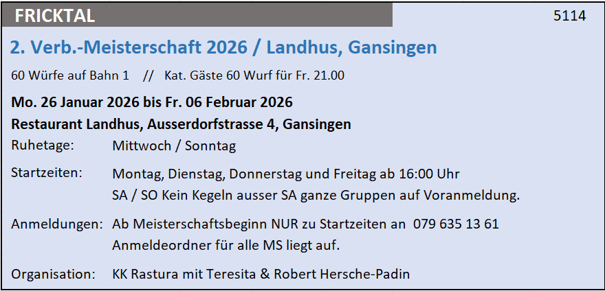 Anmeldungen ab sofort an Nik Wendelspiess 079 327 14 83 (60 1&2 ,